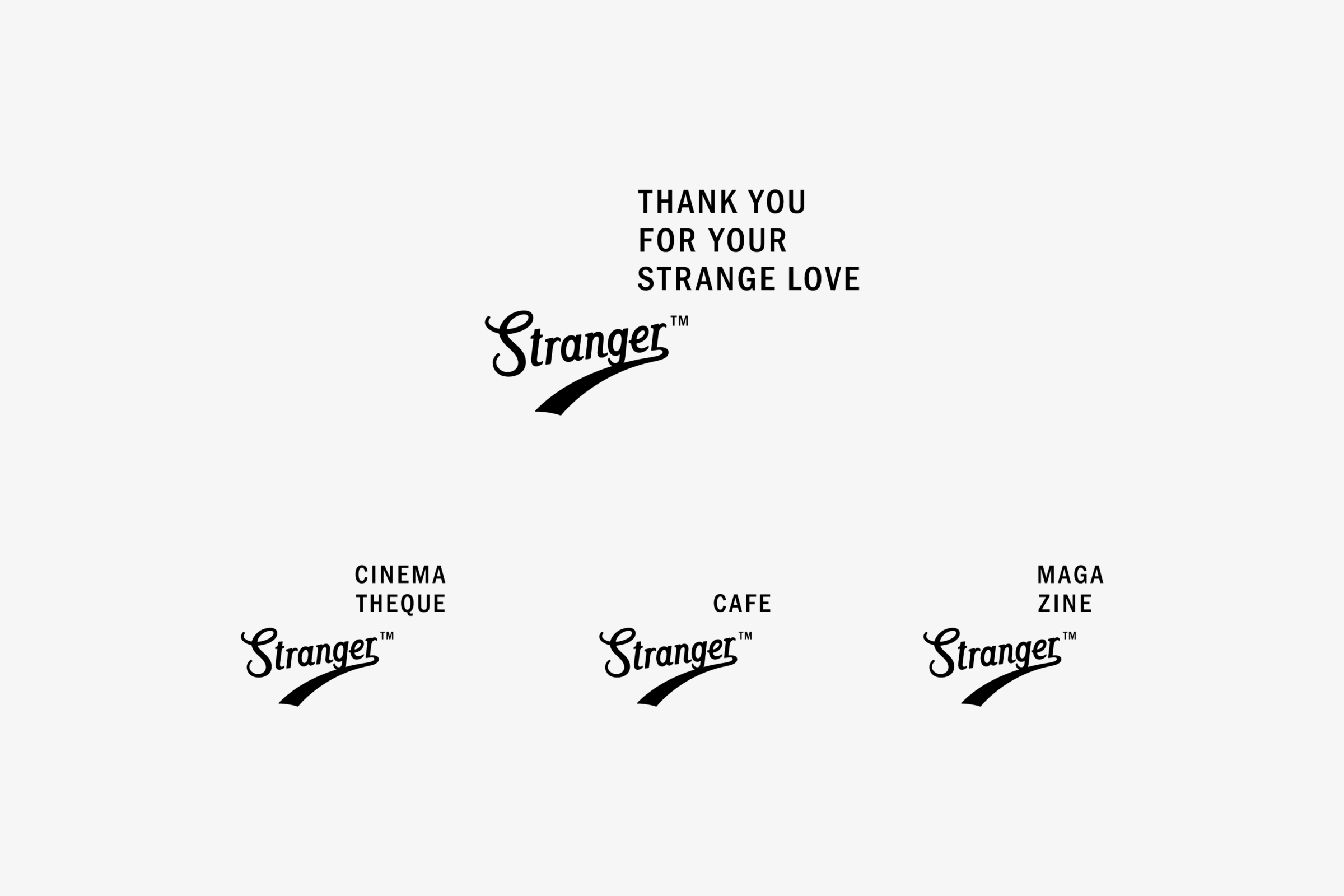 キャッチフレーズは「THANK YOU FOR YOUR STRANGE LOVE」。 ロゴのバリエーションもタグライン入りのものと、「CINEMA」「CAFE」「MAGAZINE」それぞれのカテゴリー用のものを用意しました。SNSではそれぞれアカウントを作成して運用されています。